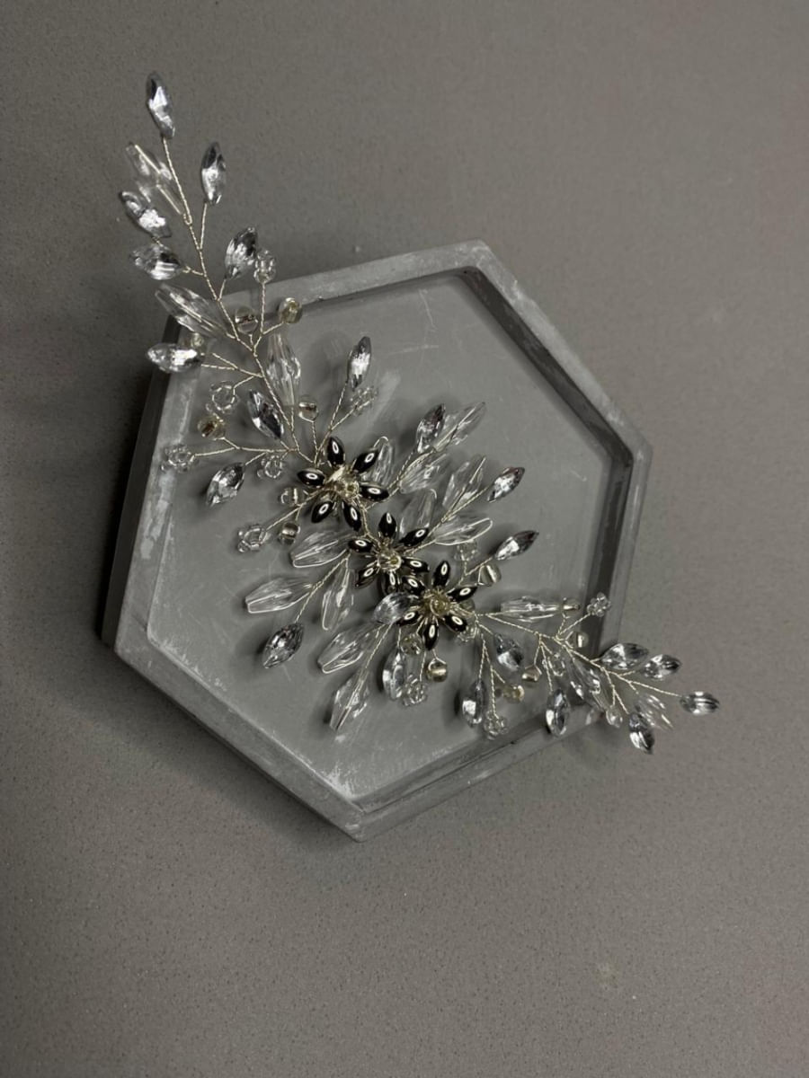 Ramo com Flores Centrais Prata e Navetes – Brilho Sutil e Elegância ModernaRamo delicado com flores centrais em tom prata e navetes com pedras transparentes, perfeito para noivas que desejam um toque de brilho discreto e sofisticado. Um acessório que valoriza o penteado com leveza e elegância.