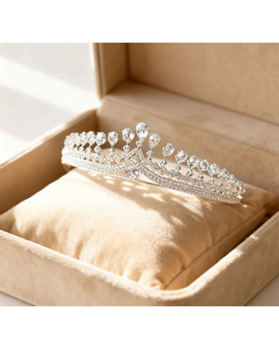 Nossa Tiara de Noiva Isadora é o acessório perfeito para noivas que buscam um toque de elegância e sofisticação em seu grande dia. Com um design minimalista. microzircônias e delicados cristais de citrino artificiais levemente azulados cravejados. esta tiara proporciona um brilho sutil que complementa diversos estilos de penteado. A peça mede 4cm de altura. Características Principais: Design Minimalista e Elegante: A tiara apresenta um estilo clean. com cristais estrategicamente posicionados para capturar a luz em cada movimento. conferindo um brilho discreto e refinado. Versatilidade em Penteados: Equipada com aros nas extremidades para fixação com grampos. adapta-se facilmente a diversos penteados. como soltos. presos. semi-presos e coques. Materiais de Alta Qualidade: Confeccionada com cristais selecionados que garantem um brilho excepcional. e banho de prata. platina ou ródio. oferecendo resistência contra arranhões e manchas. Conforto e Segurança: Leve e de fácil fixação. assegura que o penteado permaneça intacto. permitindo que você aproveite cada momento da celebração sem preocupações.Ideal para adicionar um toque de glamour sem sobrecarregar o visual. Não perca a oportunidade de adicionar este toque de sofisticação ao seu visual nupcial. Garanta agora mesmo a sua tiara dos sonhos e brilhe intensamente no seu grande dia!